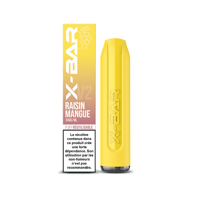 The X-BAR comes with an integrated 500 mAh battery and a fruity 2 ml e-liquid, without nicotine or in a dosage of 10 mg and 20 mg. This beautiful little disposable device has a long life and allows you to puff up to 650 delicious puffs.